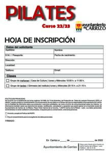 HOJA DE INCRIPCIÓN PILATES